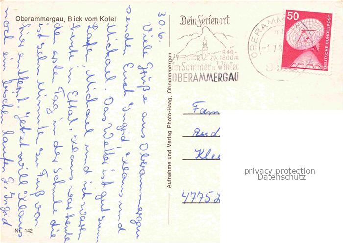 74086650 OBERAMMERGAU Bayern Blick vom Kofel postalisch gelaufen Erhaltung siehe scans [WerneD78] alte Postkarte Wern Katcode 11110009180125