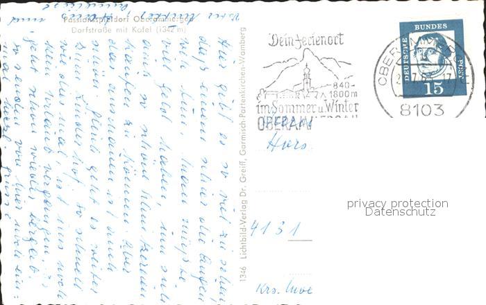 72313257 alte Postkarte OBERAMMERGAU Bayern Dorfstrasse mit Kofel postalisch gelaufen Erhaltung siehe scans KatCode: 11110009180125
