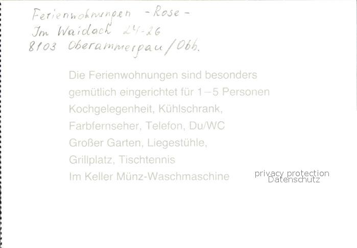 72422715 OBERAMMERGAU Bayern Ferienwohnungen Rose postalisch nicht gelaufen Werbekarte (keine Postkarte) Erhaltung siehe scans KatCode: 11110009180125
