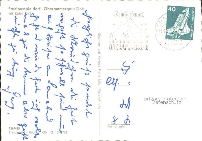 72257944 alte Postkarte OBERAMMERGAU Bayern Fliegeraufnahme Passionsspielort mit Kofel postalisch gelaufen Erhaltung siehe scans KatCode: 11110009180125