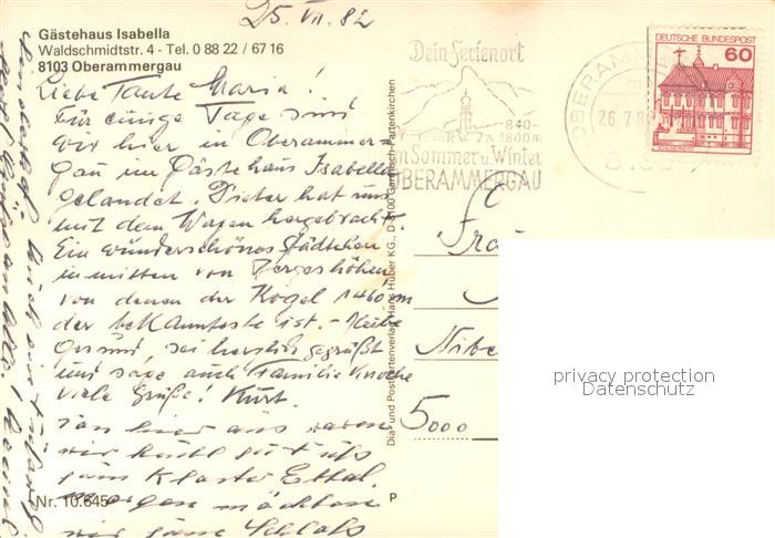 73711620 OBERAMMERGAU Bayern Gaestehaus Isabella Aussenansicht postalisch gelaufen Erhaltung siehe scans [LiesaD40] alte Postkarte Lies Katcode 11110009180125