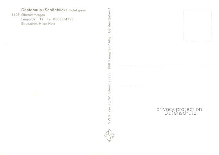 73719739 OBERAMMERGAU Bayern Gaestehaus Schoenblick Hotel garni postalisch nicht gelaufen Erhaltung siehe scans [FriedD77] Frie Katcode 11110009180125