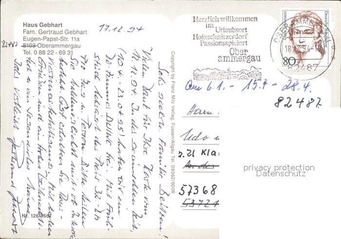 71939261 alte Postkarte OBERAMMERGAU Bayern Haus Gebhart postalisch gelaufen Erhaltung siehe scans KatCode: 11110009180125