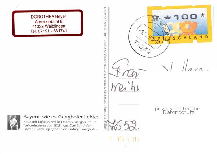 72758358 alte Postkarte OBERAMMERGAU Bayern Haus Lueftlmalerei postalisch gelaufen Erhaltung siehe scans [KathaD81] KatCode: 11110009180125