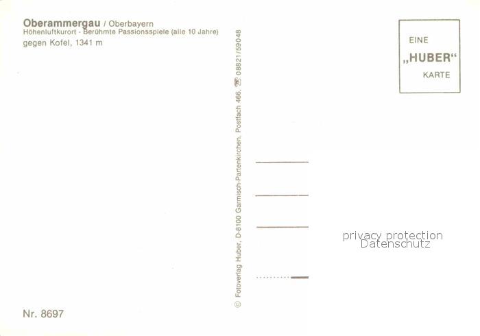 72654638 OBERAMMERGAU Bayern Hoehenluftkurort Passionsspielort gegen Kofel Ammergauer Alpen Huber Karte Nr 8697 postalisch nicht gelaufen Erhaltung siehe scans [FriedD77] KatCode: 11110009180125