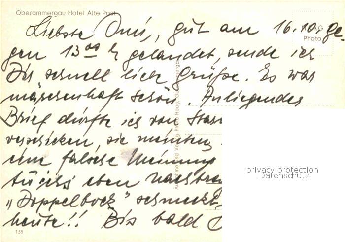 72758928 OBERAMMERGAU Bayern Hotel Alte Post postalisch nicht gelaufen Erhaltung siehe scans [WerneD78] KatCode: 11110009180125