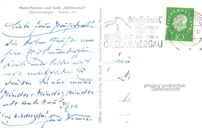 74117989 alte Postkarte OBERAMMERGAU Bayern Hotel Pension Café Schilcherhof postalisch gelaufen Erhaltung siehe scans [FriedD77] KatCode: 11110009180125