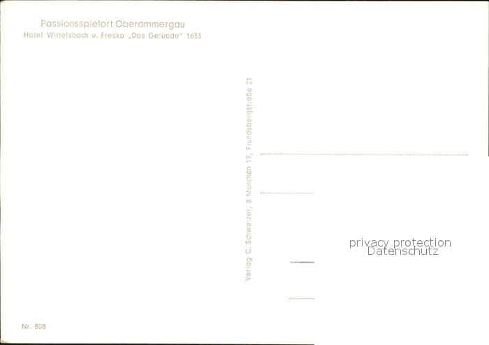 72416447 OBERAMMERGAU Bayern Hotel Wittelsbach Fresko Das Geluebde 1633 Passionsspielort Fassadenmalerei postalisch nicht gelaufen Erhaltung siehe scans KatCode: 11110009180125
