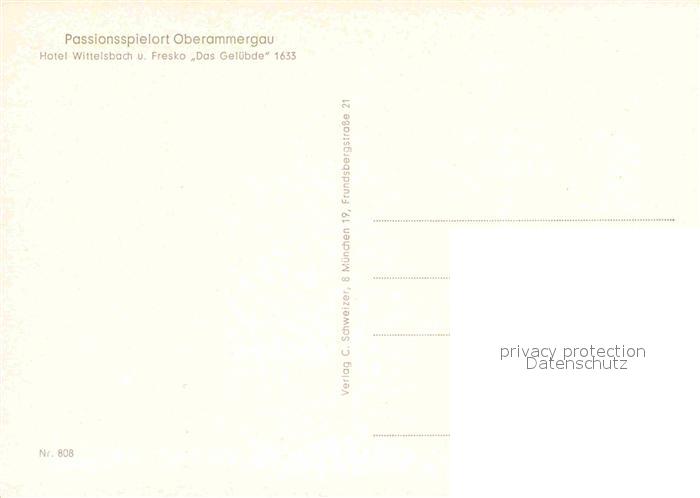 72773599 OBERAMMERGAU Bayern Hotel Wittelsbach Fresko Das Geluebde postalisch nicht gelaufen Erhaltung siehe scans [AndreD76] KatCode: 11110009180125
