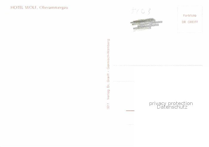 72773187 OBERAMMERGAU Bayern Hotel Wolf postalisch nicht gelaufen Erhaltung siehe scans [NatalD47] KatCode: 11110009180125