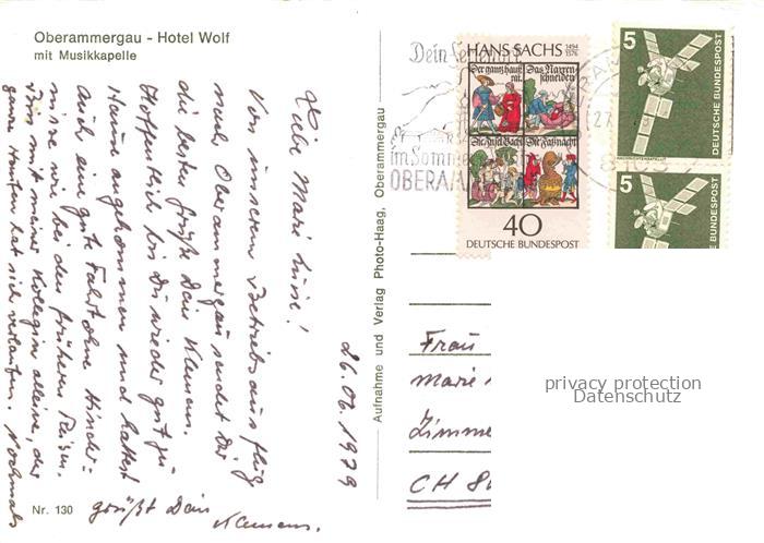 74109839 alte Postkarte OBERAMMERGAU Bayern Hotel Wolf Musikkapelle postalisch gelaufen Erhaltung siehe scans [IrynaD87] KatCode: 11110009180125