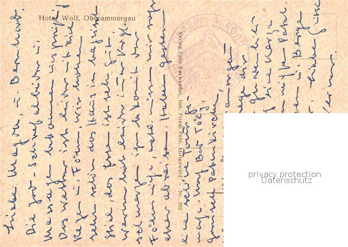 72783368 OBERAMMERGAU Bayern Hotel Wolf postalisch nicht gelaufen Erhaltung siehe scans [FriedD77] KatCode: 11110009180125