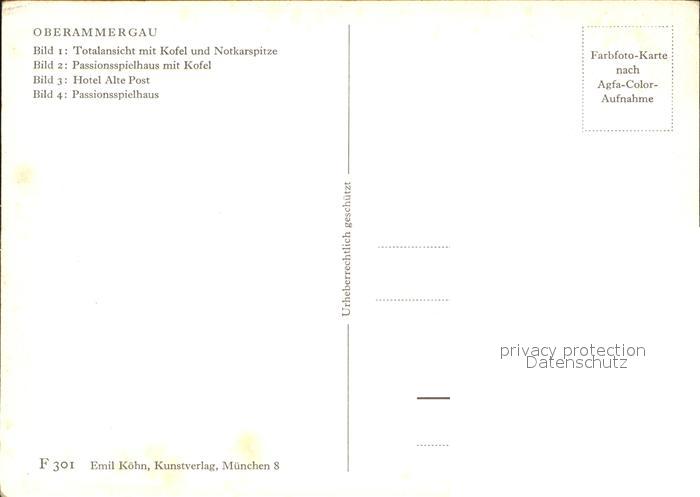72596748 OBERAMMERGAU Bayern Kofel Notkarspitze Passionsspielhaus Hotel Alte Post postalisch nicht gelaufen Erhaltung siehe scans [AndreD76] KatCode: 11110009180125