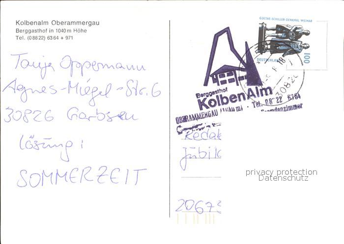 72379240 alte Postkarte OBERAMMERGAU Bayern Kolbenalm Berggasthof postalisch gelaufen Erhaltung siehe scans KatCode: 11110009180125