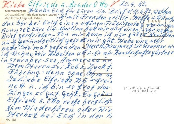 73786357 OBERAMMERGAU Bayern Kraxentraeger m. dem Laden d. Firma Lang sel. Eben bei Nacht postalisch nicht gelaufen Erhaltung siehe scans [LiesaD40] Lies Katcode 11110009180125