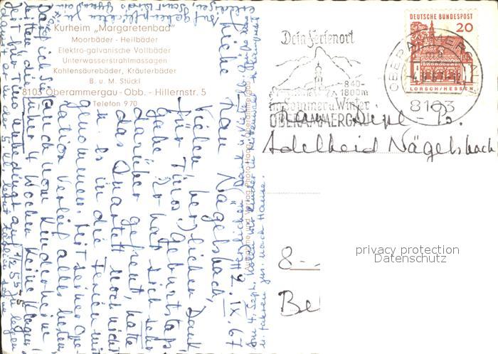 72309533 alte Postkarte OBERAMMERGAU Bayern Kurheim Margaretenbad postalisch gelaufen Erhaltung siehe scans KatCode: 11110009180125