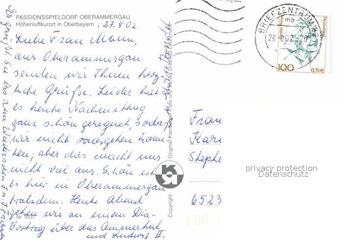 72706781 alte Postkarte OBERAMMERGAU Bayern Panorama Passionsspiel Kirche postalisch gelaufen Erhaltung siehe scans [AndreD76] KatCode: 11110009180125