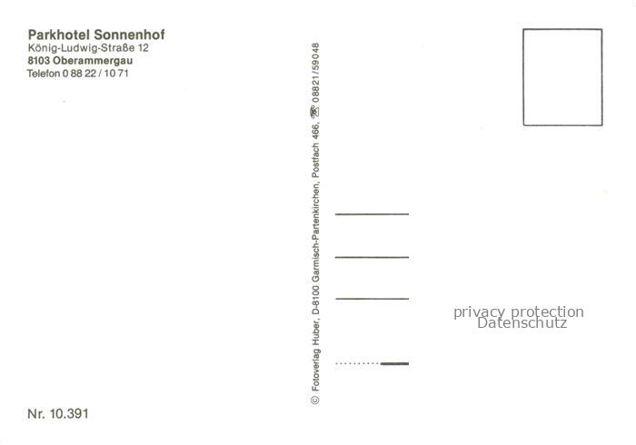 74111187 OBERAMMERGAU Bayern Parkhotel Sonnenhof postalisch nicht gelaufen Erhaltung siehe scans [WerneD78] Wern Katcode 11110009180125