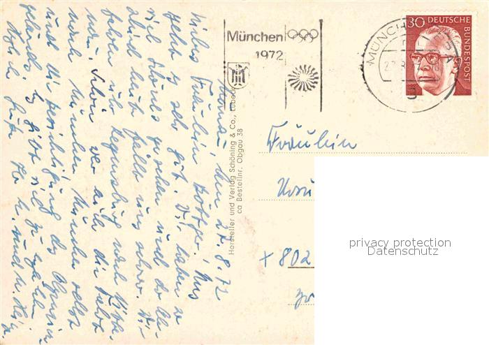 72627696 alte Postkarte OBERAMMERGAU Bayern Passionsspieldorf Kirche Hotel Alte Post Bemalte Haeuser postalisch gelaufen Erhaltung siehe scans [WerneD78] KatCode: 11110009180125