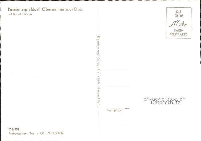 71893557 OBERAMMERGAU Bayern Passionsspieldorf Kofel postalisch nicht gelaufen Erhaltung siehe scans KatCode: 11110009180125