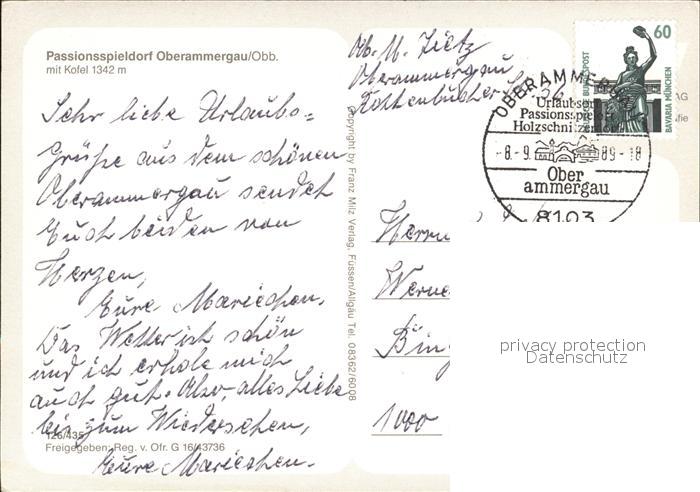 72496356 alte Postkarte OBERAMMERGAU Bayern Passionsspieldorf mit Kofel postalisch gelaufen Erhaltung siehe scans KatCode: 11110009180125