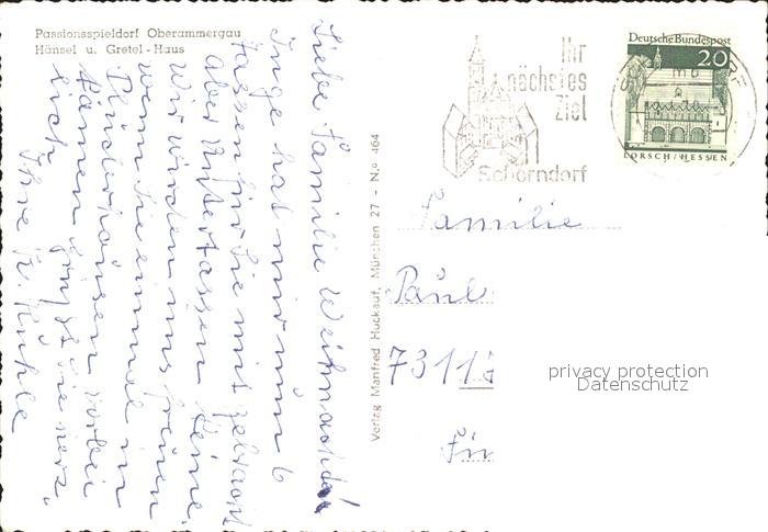 71905705 alte Postkarte OBERAMMERGAU Bayern Passionsspieldorft Haensel- und Gretelhaus postalisch gelaufen Erhaltung siehe scans KatCode: 11110009180125