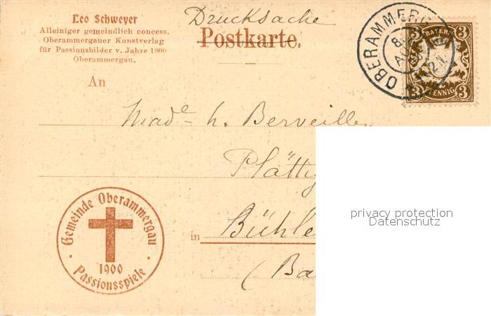 43507433 OBERAMMERGAU Bayern Passionsspiele 1900 postalisch gelaufen Erhaltung siehe scans [LiesaD40] alte Postkarte Lies Katcode 11110009180125