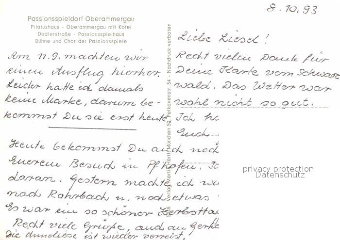 72640404 OBERAMMERGAU Bayern Passionsspielort Pilatushaus Dedlerstrasse Buehne Chor der Passionsspiele Kofel Ammergauer Alpen postalisch nicht gelaufen Erhaltung siehe scans [FriedD77] KatCode: 11110009180125