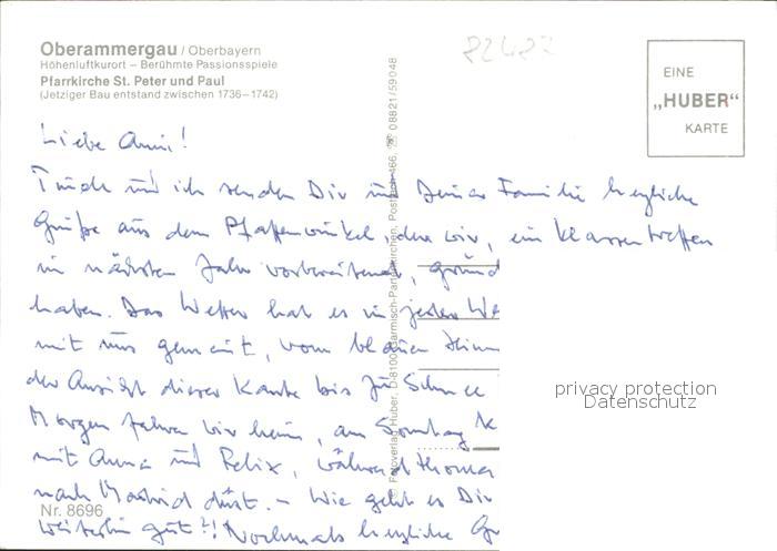 71993073 OBERAMMERGAU Bayern Pfarrkirche St Peter Paul postalisch nicht gelaufen Erhaltung siehe scans KatCode: 11110009180125