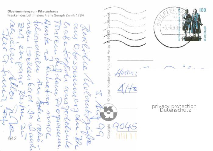 72698788 alte Postkarte OBERAMMERGAU Bayern Pilatushaus Fresken Lueftlmaler Franz Seraph Zwink 18. Jhdt. postalisch gelaufen Erhaltung siehe scans [FriedD77] KatCode: 11110009180125
