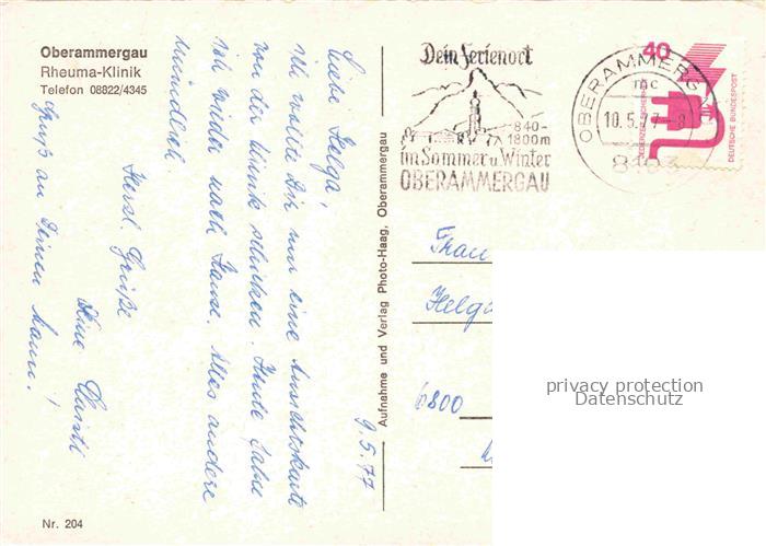 74152215 alte Postkarte OBERAMMERGAU Bayern Rheuma Klinik Panorama postalisch gelaufen Erhaltung siehe scans [WerneD78] KatCode: 11110009180125