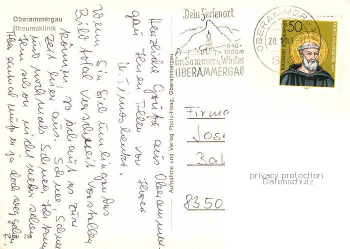 72650676 alte Postkarte OBERAMMERGAU Bayern Rheumaklinik postalisch gelaufen Erhaltung siehe scans [WerneD78] KatCode: 11110009180125