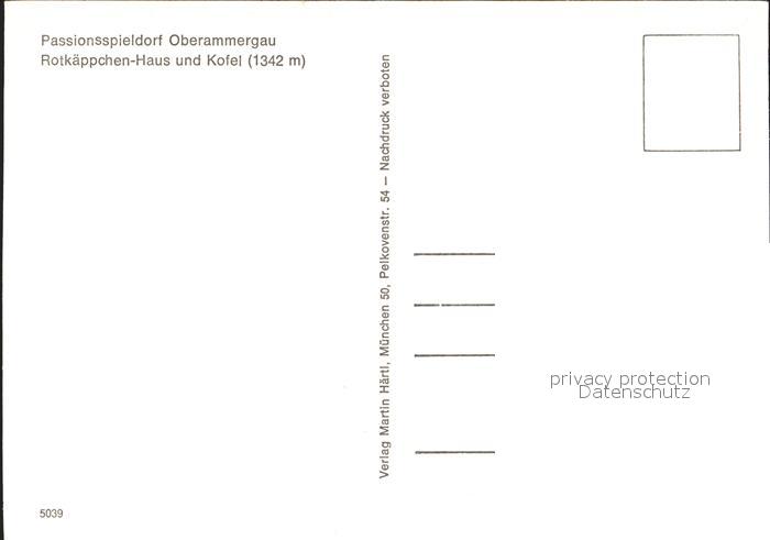 72310334 OBERAMMERGAU Bayern Rotkaeppchen-Haus Kofel postalisch nicht gelaufen Erhaltung siehe scans KatCode: 11110009180125