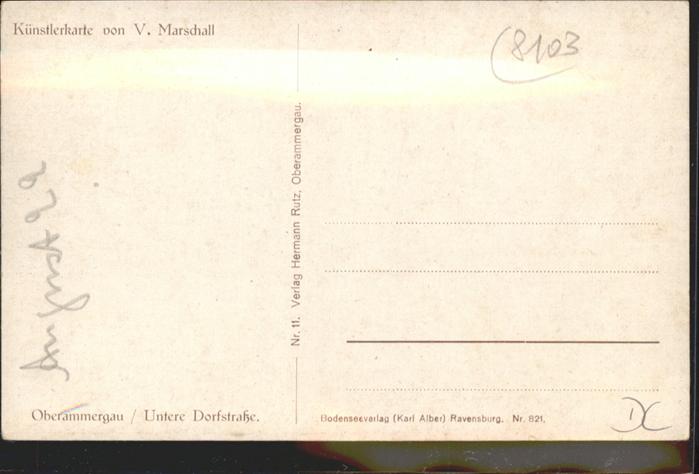 41043561 OBERAMMERGAU Bayern Untere Dorfstrasse Kuenstlerkarte V. Marschall postalisch nicht gelaufen Alte Ansichtskarte Postkarte Stef Katcode 11110009180125