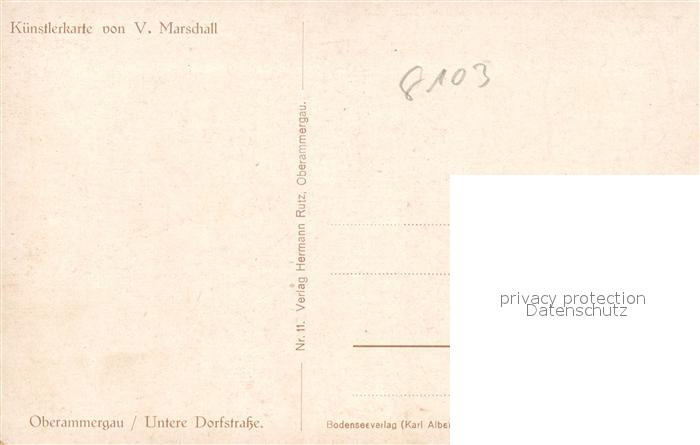 43018668 OBERAMMERGAU Bayern Untere Dorfstrasse Kuenstlerkarte von V. Marschall postalisch nicht gelaufen Erhaltung siehe scans [FriedD77] Frie Katcode 11110009180125