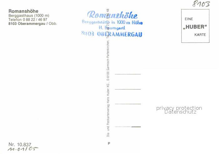72887445 Oberammergau Berggasthaus Romanshoehe postalisch nicht gelaufen Erhaltung siehe scans [WerneD78] KatCode: 11110009180125