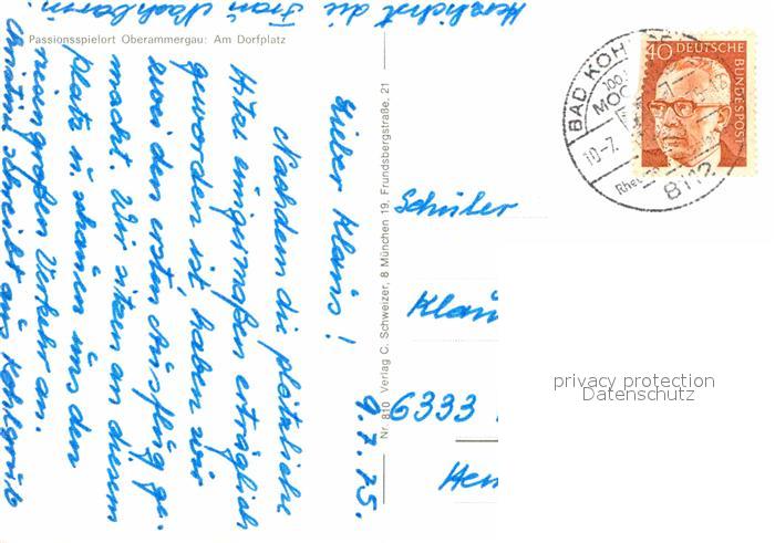 72917790 alte Postkarte Oberammergau Dorfplatz Passionsspielort postalisch gelaufen Erhaltung siehe scans [LiesaD40] KatCode: 11110009180125