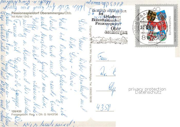 73109255 alte Postkarte Oberammergau Fliegeraufnahme postalisch gelaufen Erhaltung siehe scans [KathaD81] KatCode: 11110009180125