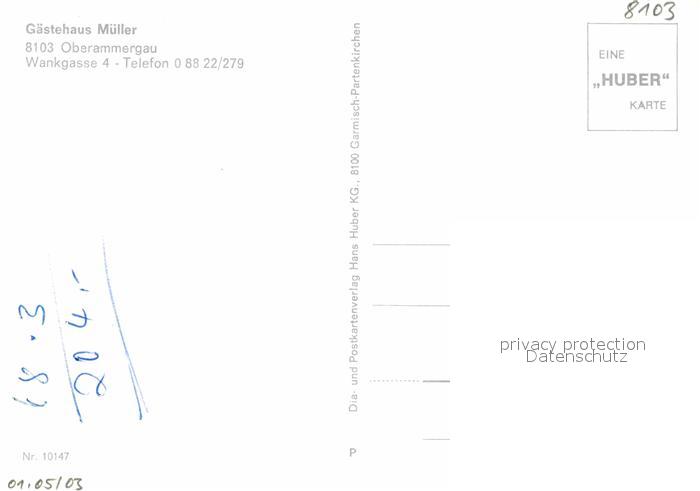 72887446 Oberammergau Gaestehaus Mueller postalisch nicht gelaufen Erhaltung siehe scans [WerneD78] KatCode: 11110009180125