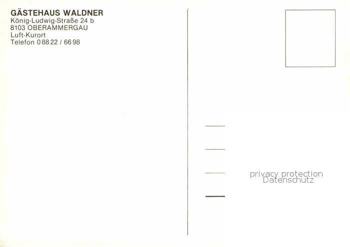 72885612 Oberammergau Gaestehaus Waldner Passionsspielort Kurort postalisch nicht gelaufen Erhaltung siehe scans [FriedD77] KatCode: 11110009180125