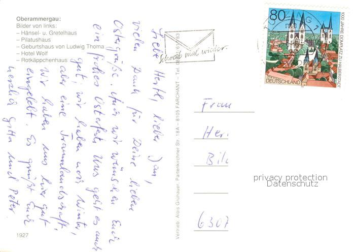 73241246 alte Postkarte Oberammergau Haensel und Gretelhaus Pilatushaus Geburtshaus Ludwig Thoma postalisch gelaufen Erhaltung siehe scans [KathaD81] KatCode: 11110009180125
