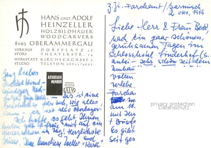 73125067 Oberammergau Hans und Adolf Heinzeller Holzbildhauer postalisch nicht gelaufen Erhaltung siehe scans [PaolaD17] KatCode: 11110009180125