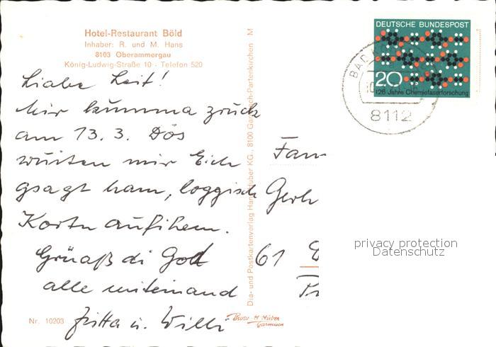 alte Postkarte Oberammergau Hotel Boeld postalisch gelaufen Erhaltung siehe scans