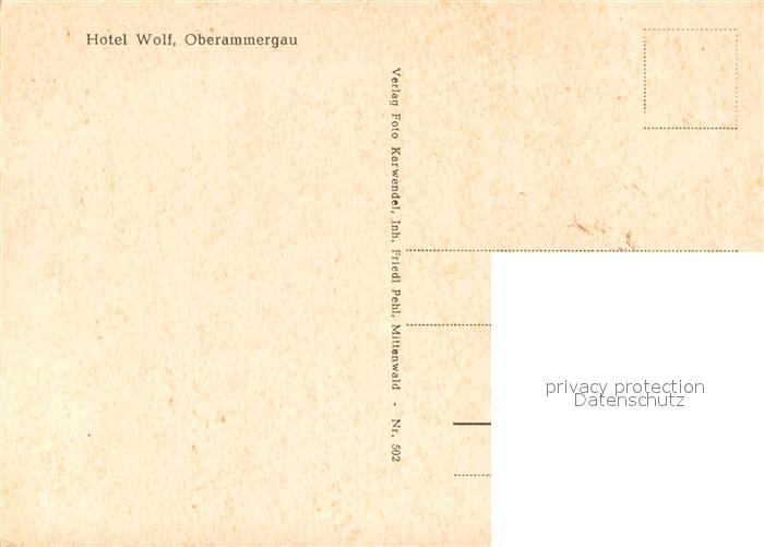 73615800 Oberammergau Hotel Wolf postalisch nicht gelaufen Erhaltung siehe scans [WerneD78] KatCode: 11110009180125