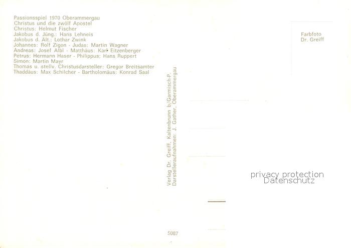 73017813 Oberammergau Passionsspiel 1970 Christus und die zwoelf Apostel postalisch nicht gelaufen Erhaltung siehe scans [WerneD78] KatCode: 11110009180125