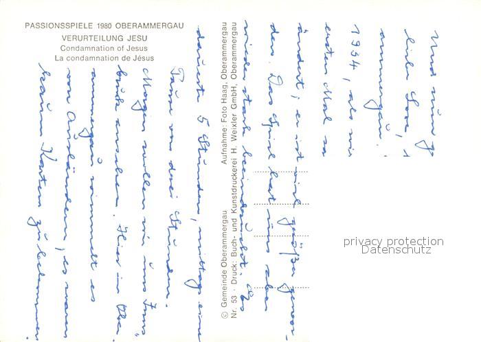 73017998 Oberammergau Passionsspiele 1980 Die Verurteilung Jesu postalisch nicht gelaufen Erhaltung siehe scans [WerneD78] KatCode: 11110009180125