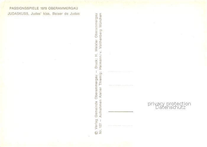 73013244 Oberammergau Passionsspiele Judakuss postalisch nicht gelaufen Erhaltung siehe scans [KathaD81] KatCode: 11110009180125
