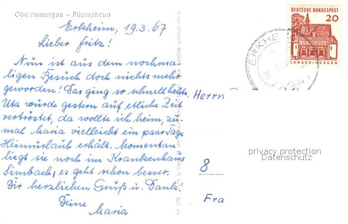 72974370 alte Postkarte Oberammergau Pilatushaus Lueftlmalereien postalisch gelaufen Erhaltung siehe scans [FriedD77] KatCode: 11110009180125