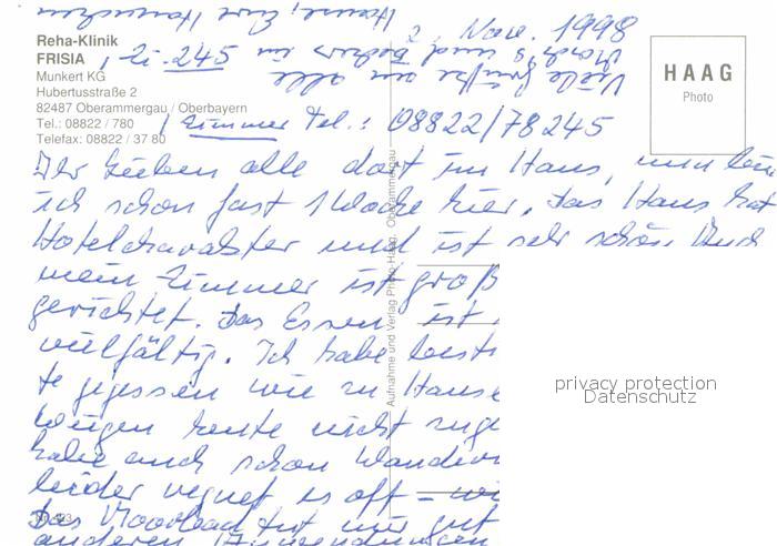 72888067 Oberammergau Reha Klinik Frisia postalisch nicht gelaufen Erhaltung siehe scans [AndreD76] KatCode: 11110009180125