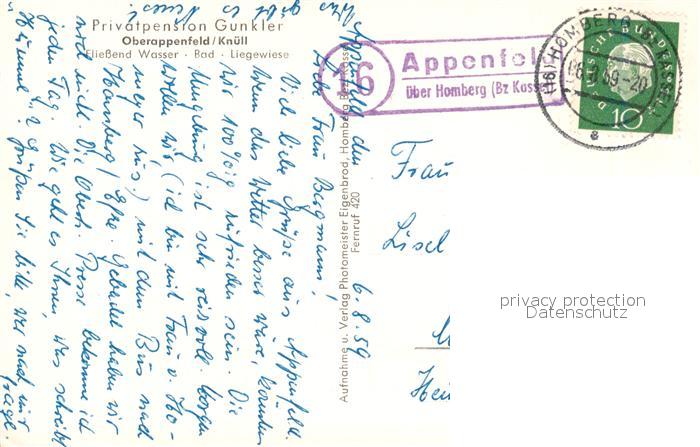 33084668 alte Postkarte Oberappenfeld Pension Guenkler postalisch gelaufen Erhaltung siehe scans [LiesaD40] KatCode: 11110006634011